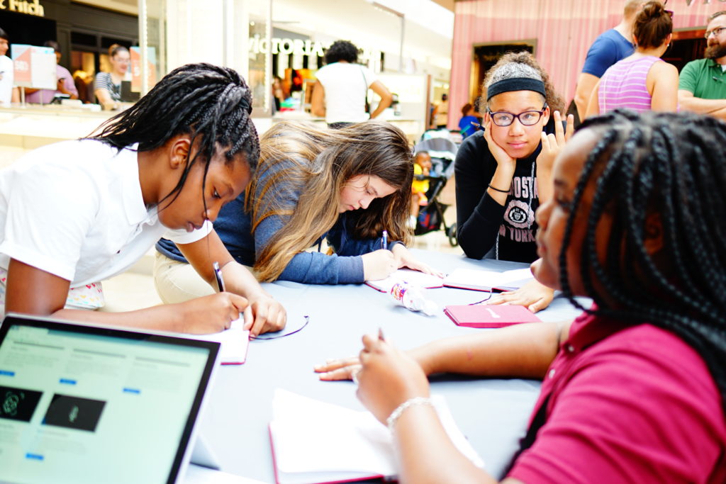 Students received a fast-paced introduction to artificial intelligence, machine learning, and data science from Dr. Cesare Wright, followed by an intensive session on engineering design process and customer discovery. Microsoft Community Development Specialist, Amanda Hines, and the retail store team supported a “break the AI” technical exercise that challenged students to test the technical constraints of the Surface tablet’s facial and expression recognition software.